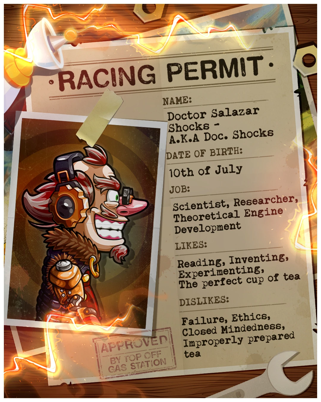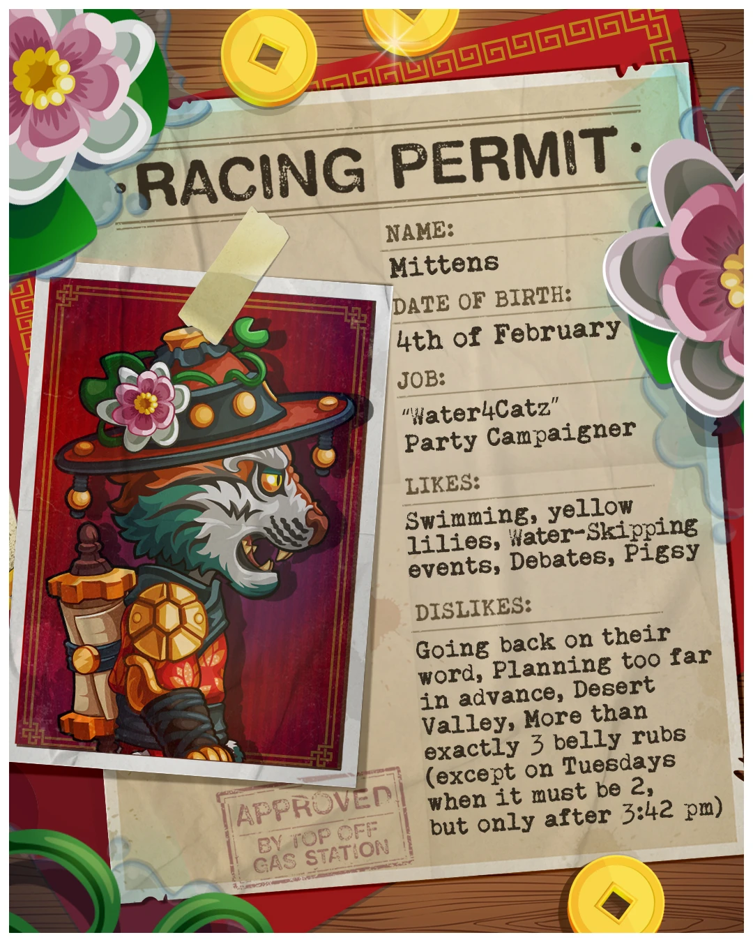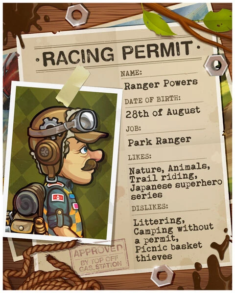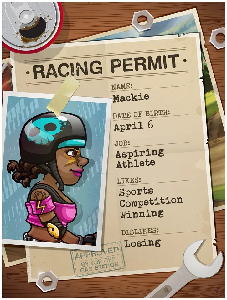 Racing permits are small snippets of lore, backstory and in jokes about the inhabitants of Climb Canyon. These are often released in tandem with new characters to give their appearance a bit of context.ttt5