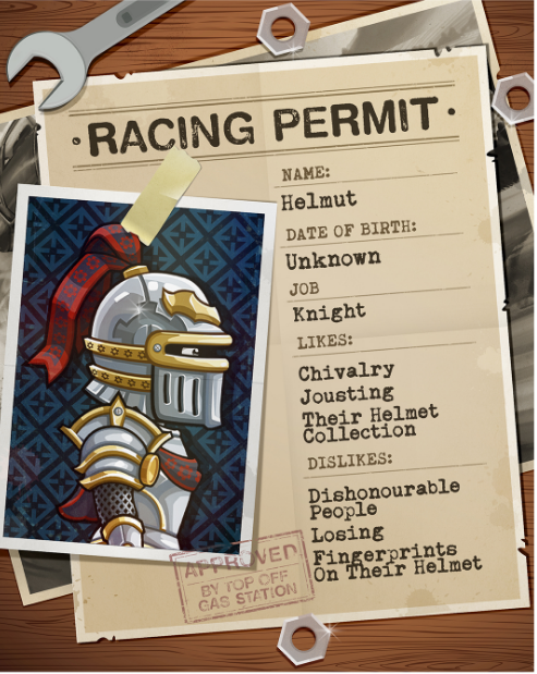A new Racing Permit has been issued by the Top Off Gas Station! Who is the mysterious Knight and what lies beneath the armour?...